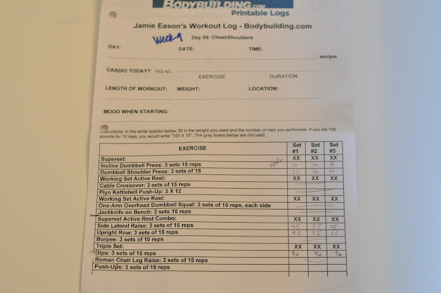 I did pretty good completing the workouts as designated, but did not follow the eating plan exactly, which calls for calorie counting in Phase 3. Because I'm already pretty lean, I just eat like I normally do, something like this:
